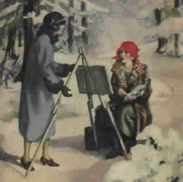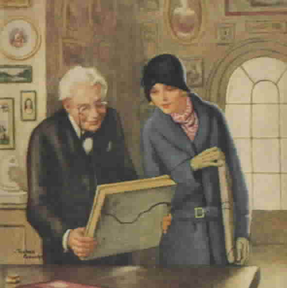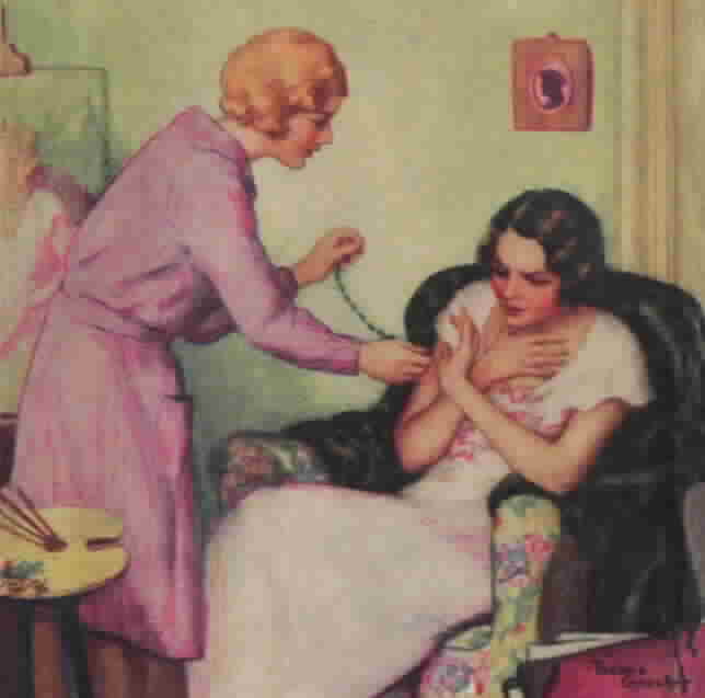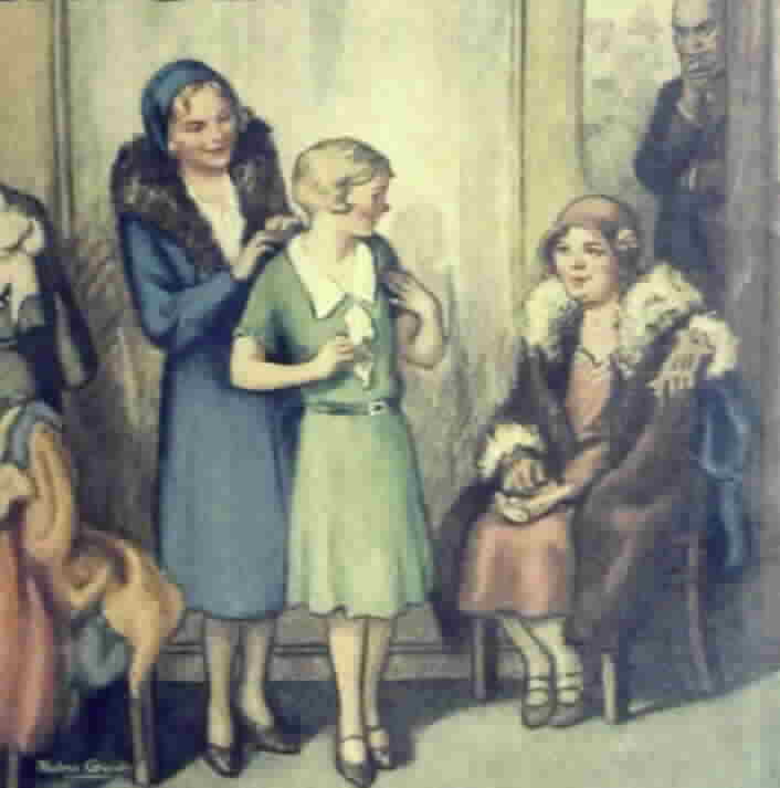 Helen decides to try for the grand prize in an art contest and chooses Margy as her model. Margy wears a lovely white gown selected by Helen and an inexpensive imitation emerald necklace that Helen purchased on sale.