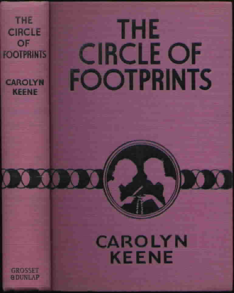 Dana Girls #1-6 printed from 1934 to 1937 have purple covers. The books have dark green and white endpapers and four glossy internal illustrations. One glossy illustration occurs before the title page, and the remaining three are scattered throughout the text of the book. The dust jackets are lavender and green. The rear panel states that the book is "a new story by the author of Nancy Drew." The books are approximately 1 1/4 inches thick.