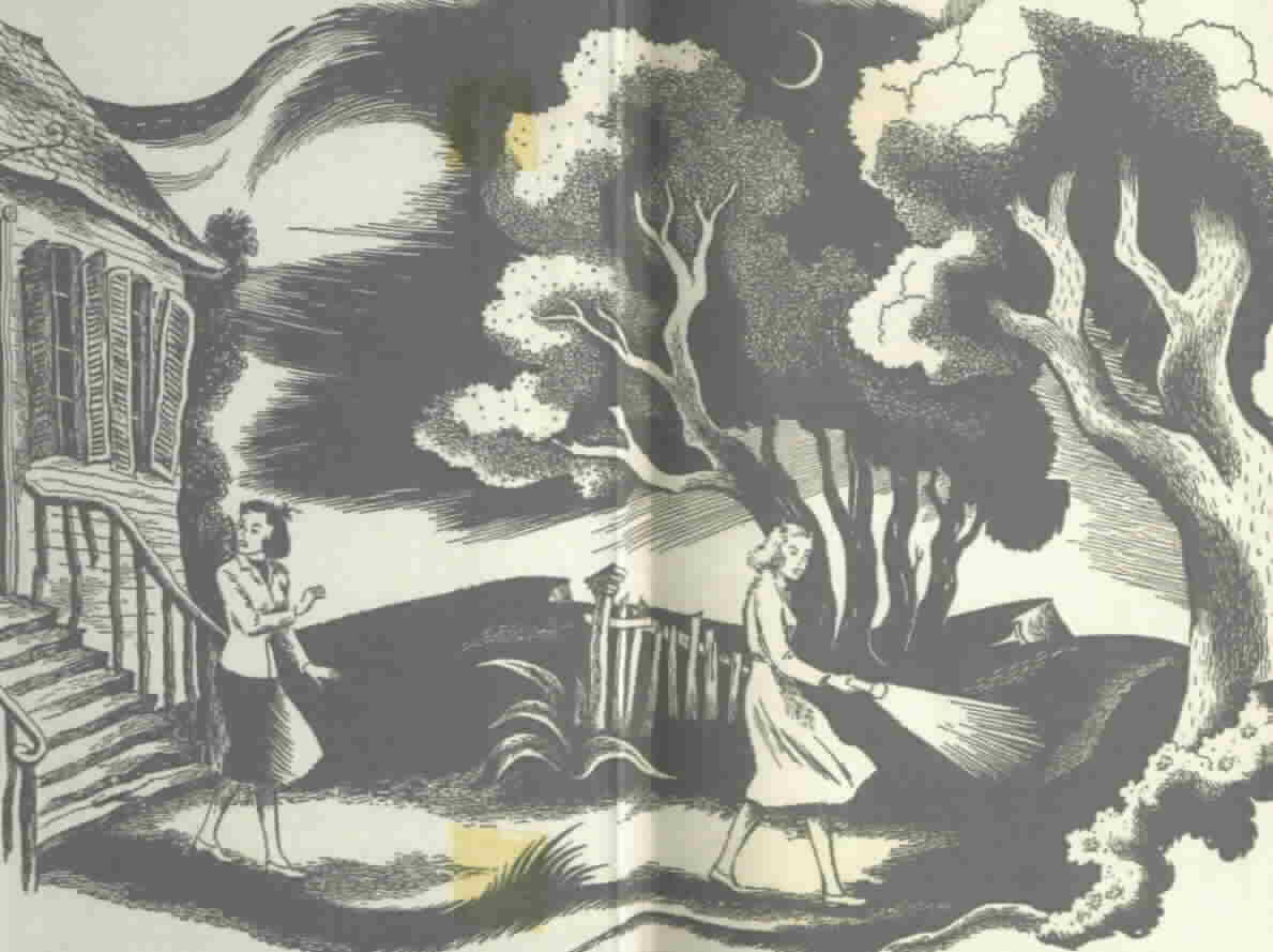 Dana Girls #1-11 printed from 1938 to 1942 have purple covers and dark green and white endpapers. #1-9 have one glossy illustration, which is the frontispiece illustration. #10-11 have a plain frontispiece illustration. The dust jackets have the same design as the 1934 to 1937 jackets except that the jacket colors have changed to blue and red. The books are 1 1/4 inches thick in 1938 and reduce to 1 1/8 inches by 1942. The books printed in 1942 have poor quality paper.