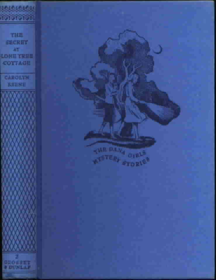 Dana Girls #1-13 printed in 1944 have solid blue covers and either dark green or maroon endpapers. All of the books have a plain frontispiece illustration. The dust jackets have the same design as the 1938 to 1943 jackets. The books are approximately 1 inch thick and have poor quality paper with a wartime conditions notice on the title page.